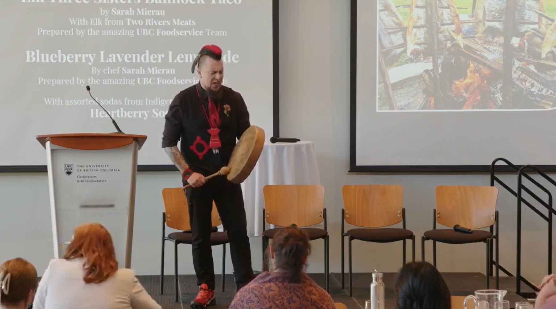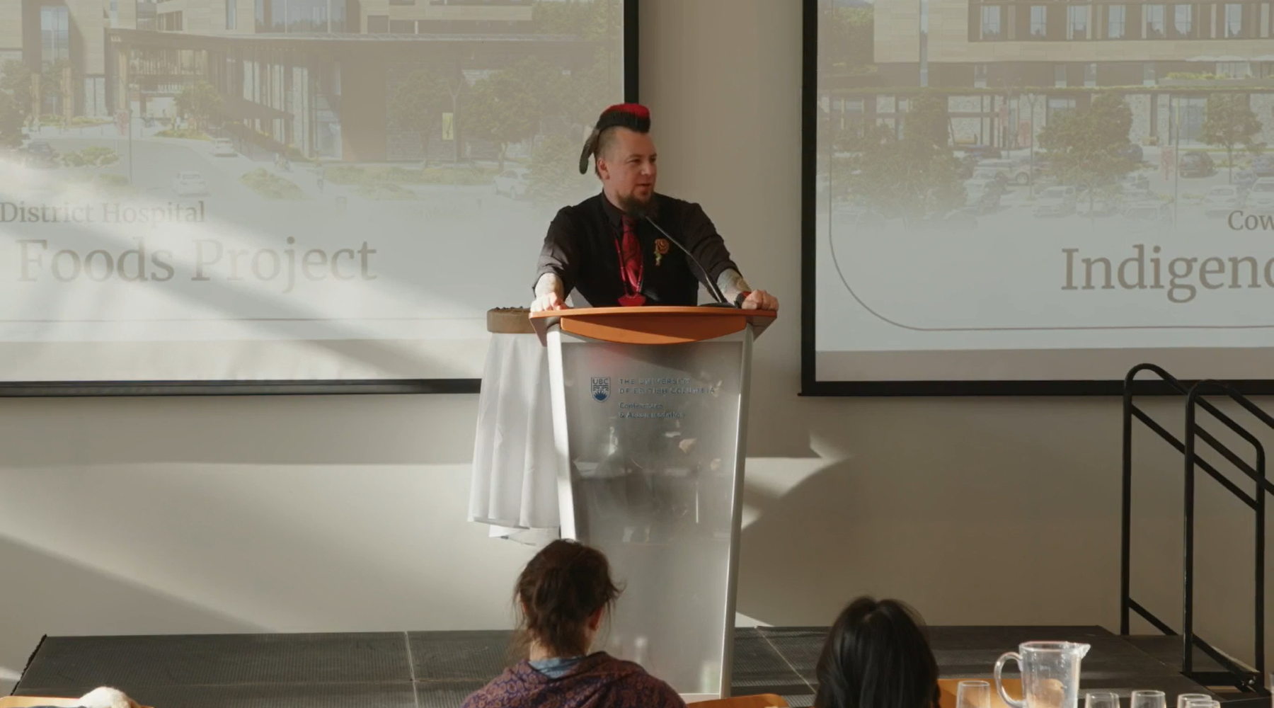 The event showcased how institutional food systems can support Indigenous businesses, cultural protocols, and wellbeing through food, stewardship, and community. Art Napoleon highlighted these values, noting in his talk how “stewardship is a responsibility that comes along the good food we all like to cook.”